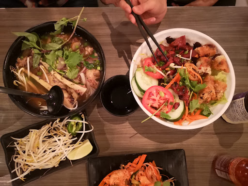 Stopped by here after getting over a cold to get warmed up with some hearty Pho, and was pleasantly surprised. For an appetizer, we had the fresh spring rolls (shrimp and lettuce wrapped in rice paper). I had the combination Pho which included rare beef, beef ball, brisket, and tendon. My boyfriend had a caramelized pork + egg roll Pleiku Bowl. Everything was fresh, well seasoned, and delicious. The Pho broth in particular was fragrant and rich. The pork in the Pleiku bowl was so good that I couldnt help stealing a few bites. The meal was very reasonably priced. Im looking forward to going back.
