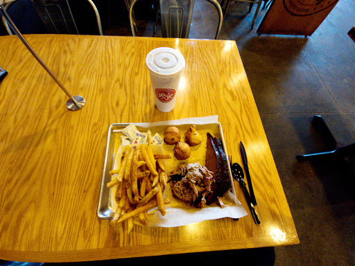 I really dug this place! I was in town for a work-ish event and some of my friends and I were free for dinner one night. This was on one of those "Top 10 Restaurants to Visit in SLC" lists... and I crossed-checked Yelp so knew it would be good! Among our trio we had a burger and fries, sliced brisket, hush puppies, and mac and cheese (ME!), and pulled pork with a bun and potato salad. I am a brisket girl and I LOVED R&Rs. Definitely among the best Ive ever had. The pulled pork was great too. And the burger was fresh and juicy. The sides were all great as well. I have no complaints about this place at all! Yes, the line moves slow, but they are very honest about that and I accept it as part of their brand! I was REALLY impressed with the quality, especially given that this place is in SLC which isnt exactly BBQ country. If Im ever in town again, I would go back!