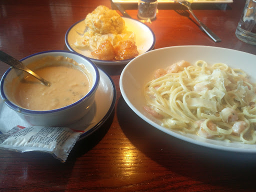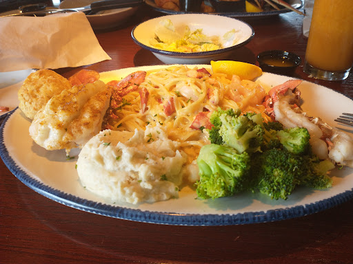 I love Red Lobster, and was really looking forward to date night with my husband. We chose Red Lobster, because my husband has never been there before. Frankly, it wasnt a great experience. We both had the new england clam chowder soup, it tasted like it came straight out of a soup can. The salads were bland, and the dressing tasted like cheap store bought ranch dressing. The stuff mushrooms were not great at all, and was coated with thick tasteless cheese. The shrimp and scallop pasta with fresh tomatoes, was bland. The shrimp and scallops had absolutely no flavoring, which they tried to cover up with greasy butter sauce. The chocolate brownie for dessert was so rich, I couldnt finish it. Honestly, it tasted like straight cocoa powder. I wouldnt recommend this restaurant. I love Red Lobster, but I wont be going back to this one.