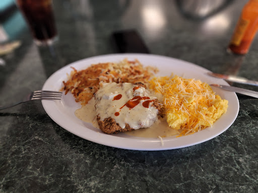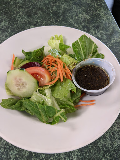 The food was ok, the waitress was nice enough. The building looks like everything else in this town..... run down. One one star rating comes from the refusal of the cook to prepare my food as requested. I ordered the club sandwich, and requested that it come with rye bread, rather than the white which was advertised. I asked the waitress if they had rye, she said yes, and I then asked to have that put on my sandwich in stead of white bread. She came back a few minutes later and said that he would not use rye bread. As I was tired, and merely here waiting for my hotel room to become available, I did not put up the argument that I should have and said ok. I must say, that is the first time in my life that a nobody cook told me that he would not prepare my food as requested. I will never return so long as he is employed there. Shame on you.