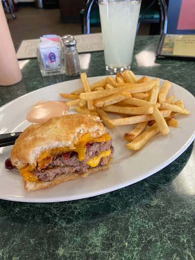 Nice little whole in the wall. When you come in you seat yourself unless in a group of 5 or more however i didnt see the sign and waited for a few minutes and not one of the employees said anything to me even though a few saw me standing there. Merinda was attentive and kind. I Ordered the mushroom burger, there wasnt cheese on it and it was thin and mediocre, fries were large but mushy! Ultimately it was an average visit. But Id be open to come in again and try something else.
