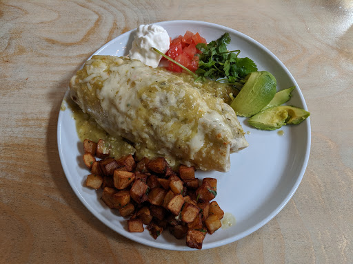 This place seems pretty trendy. Its extremely popular. Ive been told to go by a ton of different people. The perfect opportunity arose when my wife woke up one Saturday morning and wanted brunch. We headed downtown and this popped up on my Yelp search and decided to try it out. Upon entering, I had the familiar feeling of not being hip enough to belong, but thats a native emotion at this point in my life and Ive grown comfortable with it. As a matter of fact when Im in a location I feel that I fit into, its usually when Im going to bed at night in my own home. They have four dollar mimosas with your choice of orange, mango, grapefruit and guava juices. Theyre kind of small but delicious. I got the breakfast burrito. It was simple. Light tortilla, translucent. Filled with fluffy eggs and black beans and cheese. You can pay extra to a protein option, I opted not to. My wife got the breakfast bowl with brown rice. It had a delectable light yet prominent flavor. I was please. The décor is bright, and cozy. Everything is clean and simple. Id agree with all the positive reviews.