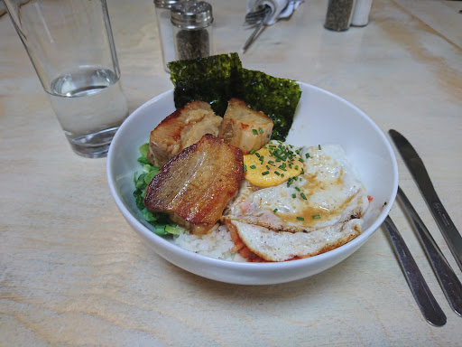I was in Salt Lake City (well, Lehi) for business, and I had some time to kill before my flight so I asked someone in my meeting about a good spot for lunch and they pointed me to Rye. First off, it was a little after 1pm on a Monday, so, there was plenty of room. Secondly, the soundtrack they had running was killer (The Clash to NIN to Journey...just all over the board, some obscure, but all enjoyable). Now, mostly importantly, I had the Pork Belly Banh Mi Salad -- holy hell! The pork belly was crispy and chunky, the dressing was brought in a self-serve container which was light and flavorful. Highly recommend.