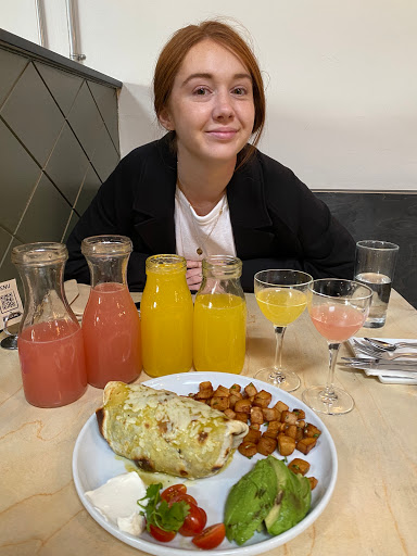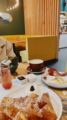 So it didnt open until 9:00 but the door was unlocked at 8:45 and they let us come in and sit down. The breakfast was great, and the atmosphere and design were awesome too. Someone or some people had and thought through ALL the details because it was awesome. From the pictures, to the layout and design, the menus and the napkins--fabulous. Now, that being said, the girl that served us was good and professional, but she seemed bugged. Maybe a coworker was late, there was another girl that showed up a little bit after opening so maybe they were short-handed because it seemed like she was the only server for a while...But overall awesome.