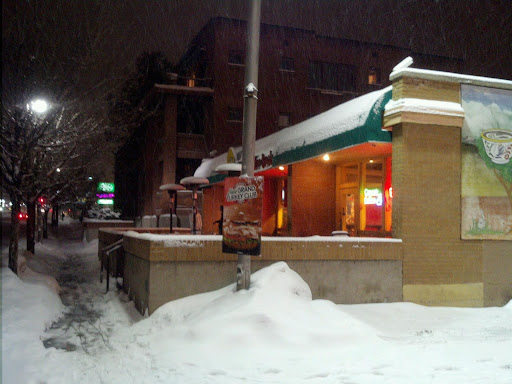 The baklava in this place is amazing! I really hope they make it themselves and dont just get it at Costco. The coffee is great, and the baristas are always extremely friendly. But it seems like nobody that works here sticks around for more than a year. The internet is usually good, even when its crowded. Its an awesome place to go late at night, because theyre always open and busy until 2 am every night. Theres usually a long line, but theyre super fast. The smoking patio is nice, and right on 400 N. And inside doesnt smell like smoke for some reason. Maybe they have awesome ventilation.