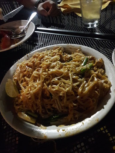 I ordered from here because they were open until 9:30 and I missed My Thai at 9. They seem to have an excellent atmosphere (i dashed in to pick up the food as they were closing) but the dishes cost around $12-$14 a pop, but they were prepped with TLC/ingredient standards & for abt a $6-$8 dish. The dishes were SO spicey it ruined the whole cheap thai experience to the point i could barley eat any of the dishes (never mind it was the most ive ever paid for cheap thai and the worst thai food ive ever had). I ordered mine not-spicy and last minute said *a little* spicey (maybe i should have really emphasized MILD) my gf ordered hers spicey. I couldnt tell a difference. I dont know how our friends Mild dish turned out. The chicken was so rubbery it was disgusting. -- Conclusion: Most Ive ever paid for the worst Thai food Ive ever had-- but keep in mind im fresh out of NYC (food spoiled def?) and my mind is still blown that this is the latest place i could get Thai in a full blown city and my gfs local standards gave it a 6 even with her mouth burning off in complaint. - I like family run estabs and hope this was mostly the result of a rushed "closing time special".
