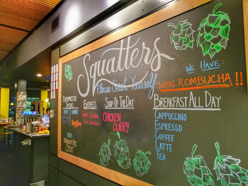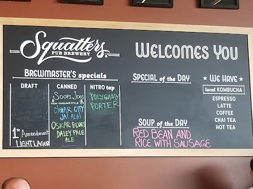 Squatters has excellent beer, food was very average, service was horrible. Waited for a long time for my check, was not busy but the wait staff were telling stories and eating meals while they had customers with empty drinks and no checks.