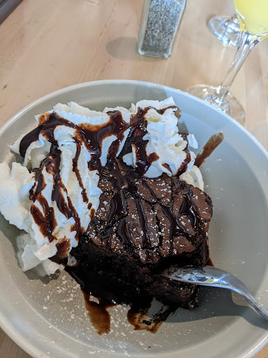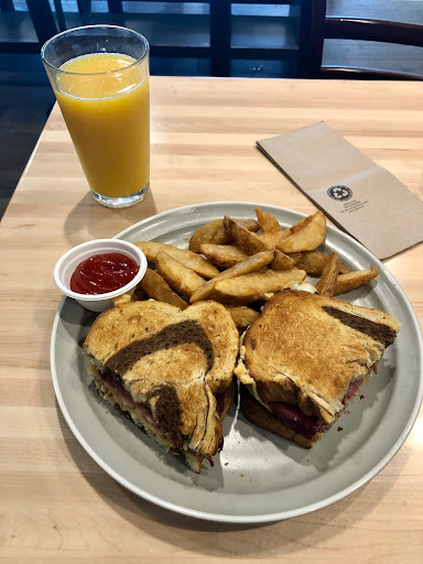 Good place for a Bloody Mary, the mix was thick and flavorful. Got the burger with beef and pastrami. The beef was dry and over cooked and flavorless, pastrami was dry too but made up for the flavorless beef. Healthy option was a plus (side of salad or celery and carrots instead of chips... no fries available). Service was fast and to the point .