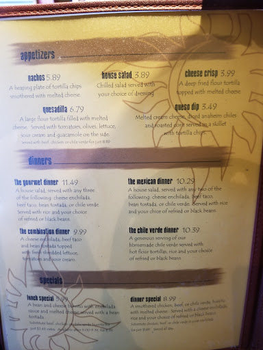 I took my wife to this mexican restraunt to celebrate her getting out of school. After eating at the restraunt there wasnt much to celebrate. The food was the worst mexican food I have ever eaten, and I am a huge mexican food lover. I had the Chile Verde salad, and it was disgusting. The Chile Verde was over seasoned, and it didnt come with alot of salad. The complimentary chips and salsa was also disappointing. They do have a unique salsa, that does resemble salsa mixed with ketchup. I would also catogorize the salsa as being the worst I have ever had. Long story short, it has been the only restraunt where I have walked away hungry. Save your money, and go to taco bell. Or if you want the best, go to blue iguana.