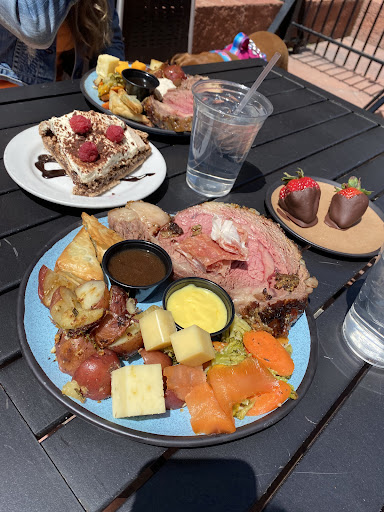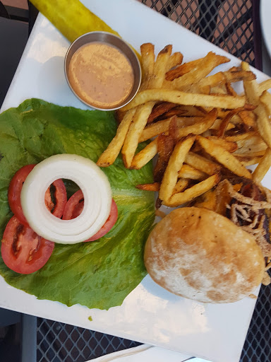 I arrived at a slow time for restaurants and bars (@ 4 pm). The patio was big and empty when I arrived, but filled up later. I popped my head in the restaurant and got the attention of the bartender. As I was traveling solo with two large dogs, I couldnt go all the way in. The bartender was wonderful. She brought a water dish for the dogs and refilled it after they slurped it down. The patio was lovely with a soothing water feature next to it. There is a dog relief area immediately across the street with bags and everything. My beer and spinach salad (with Brussels sprouts and portobello mushrooms) were delicious!