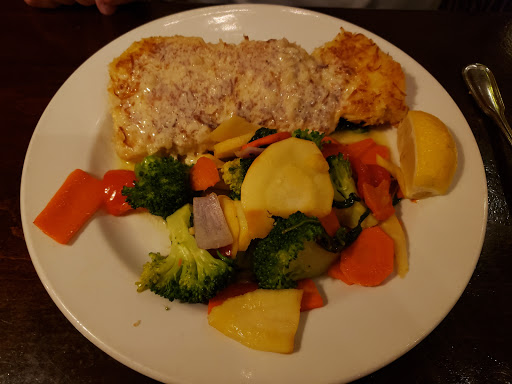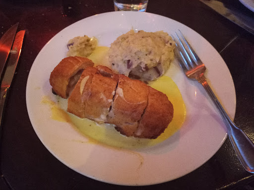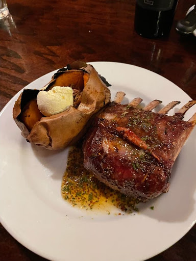 Pretty “meh”, especially for the price. I got the ribs, wife got the pork chop with maple apple chutney. My food came out cold, but the server spent 15 minutes chatting with another table without coming to check on us. I tried to shut up and enjoy them but could only get through 2. Had to grab another server to ask for hot food, and by the time our server came back everyone else at our table was already finished eating before I could even get started. Wife’s pork chop was burned and dry. You can tell they hardly go through enough ribs to justify having them on the menu because they were dry and pretty flavorless, like they were sitting in a hot bath waiting for a customer. The calamari appetizer was great (minus the hair stuck in one of the pieces), but all in all it feels like “just another expensive steakhouse”. Do yourself a favor and go to Texas Roadhouse. Edit: lowered from 2 stars to 1. Apparently the cold ribs gave me food poisoning.
