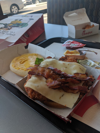 I love Chick-fil-A! This location in particular is my favorite. The staff is always so extremely nice. The restaurant is clean, the food is always fresh, and its never a long wait. One time our food took longer than it should (we didnt even notice) so they brought out a free meal coupon along with our food! The staff always goes the extra mile. They even come around to your table to see if you want a refill on your drink. They go above and beyond for a fast food place.