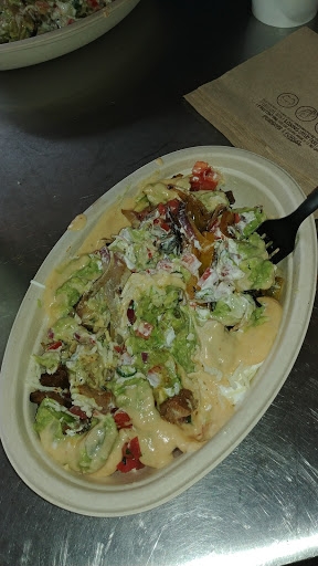 Full disclosure: I love Chipotle. I dont eat here often enough because I live so far away but I still get there half a dozen times a year. The food is very consistent. The only problem Ive ever had with it is done over-salted beans (not at this location). For me and others I know, the trick to Chipotle is figuring out what you like. That can take a few visits. My girlfriend isnt big on spicy food or burritos but once she figured out that the quesadilla is delicious and their chips and guac is the best around, she started liking it. I like the burrito with white rice, black beans, chicken, hot salsa and sour cream. Sometimes I get the cheese but it can actually run the taste of they put too much. Anyway, much love for Chipotle and this location is great.