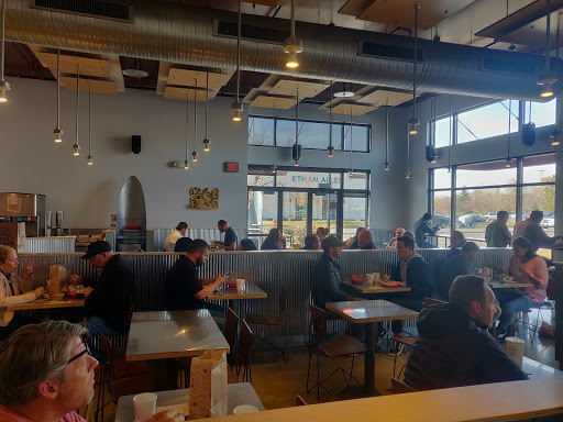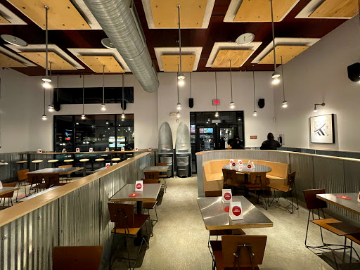 I got through the line pretty quickly during the lunch rush. The staff was friendly and definitely knew what they were doing. The place was really dark, as all the windows face the north and west. Really minimal decor too, nothing was really saying, "stay and eat a while." Tables were clear, but not wiped down. The food itself wasnt bad, but wasnt the best either. It just tasted like really really good top notch Taco Bell. (I got a Barbacoa Bowl). Im not going out of my way to eat here again, but I wouldnt refuse if someone wanted to pay for me. All in all, I dont see what the craze is about.