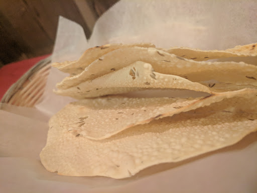 For a Tuesday evening I felt like the service was lacking. I came with a group of nurses and we werent in a rush but the delay in being served was noticeable. I wasnt impressed with the presentation of the naan bread basket. It would be better on a plate or at least separated into each flavor it was hard to tell which was which. In general I liked plain or garlic naan the most anyway. Shrimp tandoori mild heat was yummy and any tandoori item is a good choice and we also tried bison dumplings that had good flavor too. Even though there was slow service they were exceptional at filling our water, we never had to ask and there was no interruption I hardly noticed, that impressed me. After this visit Im not dying to return but I am curious about lunch buffet so maybe eventually I will come back to try it.