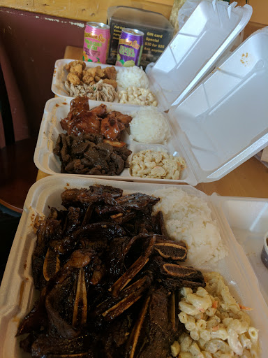 Sad to say this place was just okay. My husband and I got a Groupon to try it out but was disappointed by everything. They were not friendly, in fact almost grumpy when we presented the Groupon. The place was a mess, years of dust, unclean tables, dirty walls and broken tables. The food came out warm and was over cooked and under flavored. I was very sad because I grew up eating Hawaiian food made by my parents and am a looking for that yummy comfort but this place lacked all of what you come to expect from such a place. I can guess it once had that love in it but is now needing a visit from some good Aunties and Grandma Tootoo. I may have come on a bad day, I hope but they will not get my business again and Ill go to the Theki Hawaiian restraunt in West Jordan on Redwood Road, from now on.