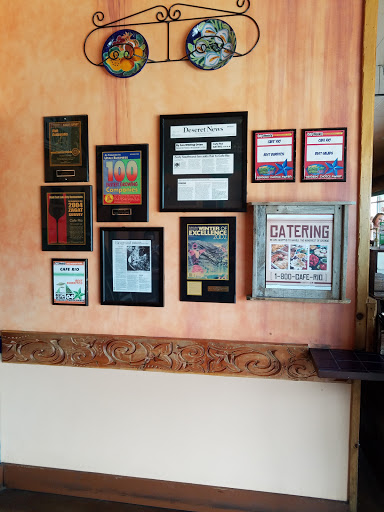 This Cafe Rio is dirty. The windows look like they havent been washed in a week and the chilis they have hanging up have a thick layer of dust! Not to mention they are all broken, take them down! The chicken tastes like is comes from a can and they charge extra for grilled chicken. The employee are soooo slow and act like your twisting their arm to serve you. Also, they look unclean and unkept! I would not want them making or serving me food. After waiting in line for 10 minutes I decided to leave. Do not recommend going there!