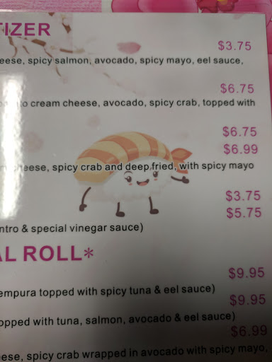 Awesome and friendly atmosphere! Im here out of town, driving from Florida to Washington, craved sushi and came here. They actually had white tuna I was happy to see, very hard to find in some parts of Florida because most people like Mahi. Anyways, staff was fun and friendly, sushi was good (gotta sit at the bar) and if youre getting beer get the Asahi. Blowso the other beer out of the water, plus its big and strong ;) good place. Sad Ill never see it again.