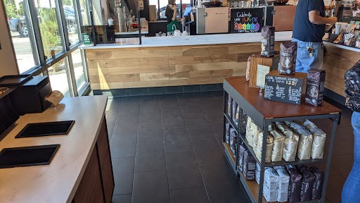 Nothing like the wafting breeze of coffee to greet you when you enter a Starbucks. This one is no exception. Nice modern interior finish. Not too loud. And they have a drive through!