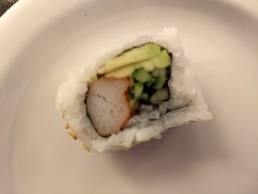The sushi is really really good when you actually get it in your mouth. It falls apart usually. I always order the sunny and it had crab, cream cheese and mango. Sometimes they get a wild hair and put cucumbers in it...