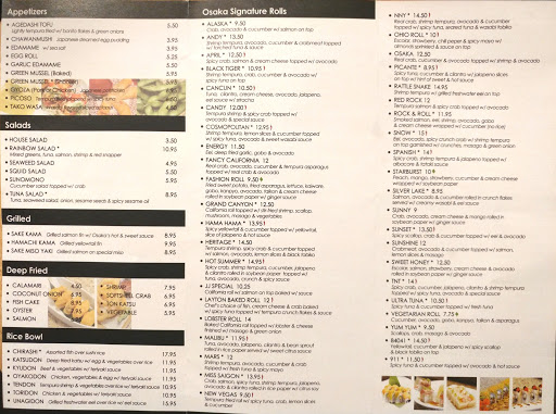 I go to Osaka regularly (perhaps a little to regularly) and they have yet to leave me feeling disheartened about my meal choice. While I have yet to try everything on the menu, I highly recommend the Vegas and Mexican Crunch rolls.