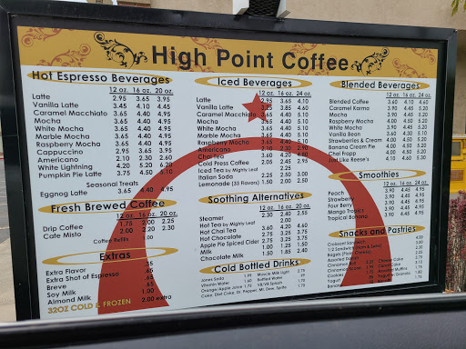 Most importantly, the espresso-based drinks at High Point are excellent. The atmosphere is relaxing and its a great place to hang out solo or with friends to chat. My Mormon friends love to come with and get a smoothie.