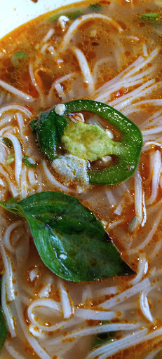 I love the Beef Steak Pho. Cilantro, green onion and a little red onion is in the pho when they bring it out. This is all accompanied by a beautiful side that includes fresh Basil, (sometimes Saw Leaves), Jalapenos, Bean Sprouts and a Lime Wedge. Flavor is very good! Im HOOKED!!! They are very quick to get your food out, important at lunchtime.