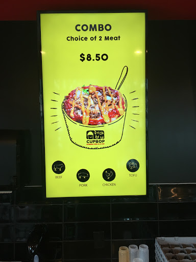My girlfriend has loved Cupbop since discovering as a food truck, so we were excited to try the new location. The location looked great, seemed clean, and they chose the right area to be in. However, the restaurant was freezing inside, the food was subpar, and the amount of meat actually received compared to the price you pay is ridiculously low. They have a little TV showing their accomplishments and goals on Korean television, which is cool, and noticed one of their points of their permanent locations was to hire women particularly for the job. Im all for job equality but its much like Zupas and how they hardly hire anyone other than "pretty" women. Maybe try the place sometime and if you like this sort of food and can afford to pay extra for more meat on top of an already expensive meal, it may be for you. However, for most people in the surrounding area, it doesnt quite make their price range.