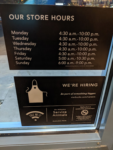 I havent had a good experience at this Starbucks. When I first when there they took my order but then I had to wait for about half a hour to get what I order. The second time that I went, It was when the store closed at 10:30 pm and I went there about at 10:00 pm to take a Frappe for my family but when they saw us coming through the drive thru they didnt even answered. I drived by the drive thru window and saw that the 16-18 year old kids had turned off the lights and running somewhere so we couldnt see them!! The Third time I went, I went to the store like at the same time at 10 pm when it closed at 10:30 pm and this time I didnt went to the drive thru. This time I wanted to pick them up inside the store but it was close and there was just a guy mopping there. You guys should update and put the exact time that the store will store or just make them close the store when it the time you guys put in the Store hours. Because when I mostly go they close it 30 minutes before the time that it actually says.