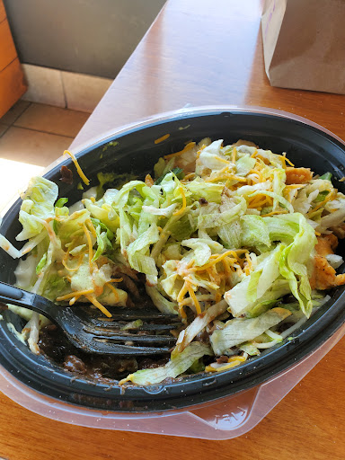 Not very keen on coming back to this specific location. They forgot a part of my order that I paid $10 for and seemed to be in a hurry to get me out of there asap. I told them three times that I wanted little to no sour cream whatsoever because I have coworkers that do not like it, myself included, but as were eating it theres a ton of sour cream in the tacos. The food altogether was mediocre at best, but the taco shells were smashed and it all seemed to be thrown together with no care at all. The taco bell at my hometown makes better food than this and has better customer service. I deal with nasty customers about their food and know how tiring it is but as a manager even I would not allow this food to be served to people. I regret spending my money here and not going somewhere else, like Wendys.