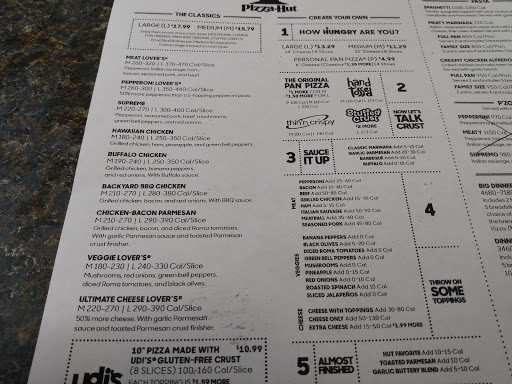 The pizza, salad bar, and bread sticks are always great. I only wish they had a lunch buffet like other Pizza Huts do. I think a buffet would bring a great crowd during the lunch hour! Great for competition!