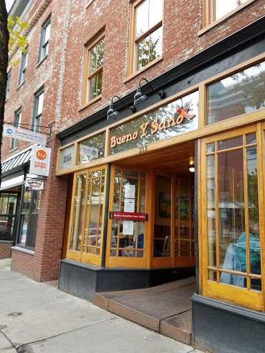 My fiancé and I were traveling through Burlington and stopped to eat at Bueno Y Sano - and we were so happy we did!! They had a great menu, lots of choices for meat-eaters and vegetarians. The burritos were huge filled with fresh chicken and lots of lettuce. The price was also very reasonable.