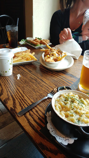 This place needs a restaurant rescue. It was my girlfriend’s birthday and we hadn’t been downtown for dinner in sometime. So on a Saturday night at a quarter past 6 we walked into the Vermont Pub and Brewery. It was slamming busy. From the moment we entered there were people everywhere and servers were buzzing about. After checking in at the hostess stand and being told it would be about 20-20 minutes for a table we accepted the blue electronic table pager. We squeezed into a couple of stools in the bar area and studied the enormous menu. The pager went off after about 15 minutes and we were seated. But the seating was terribly cramped. The adjoining table was right on top of us. Every time someone got up they bumped into my girlfriend. Anyhow, we ordered 2 Cajun Calamari’s for an appetizer when our waiter took our drink orders. The calamari arrived and I guess I was thankful for the little oil fired lamp that provided barely any light to us. The calamari was a small, meager portion fried in oil that had seen better days. The squid was dark and oily. I’m going to say in addition to the contaminated fry oil that whoever cooked the squid did not let the oil get back up to the required 350 degrees cooking temperature. The glut of oil on the plates would have qualified for EPA superfund status. Now, on to the entrees. I had order the grilled salmon with a double side of Béarnaise, broccoli and garlic mashed potatoes. My dining companion had order the Greek prepared scrod with sweet potato fries. My salmon was actually pretty OK. It was grilled properly and flavorful. The sides were problematic. I was the served horseradish mashed not the garlic that was ordered and all the sides were ice cold. The dish served to my girlfriend had issues as well. About one third of the scrod portion was laid out side of the baking dish. It had become molded to the side of the dish during the baking and was completely dried out and inedible. The sweet potato fries were the only saving grace to the dinner. They and the honey mustard dressing were both very good. With tip we were out of there for $65.00. It was a disappointing meal and service. I would advise you to look elsewhere if you want more than burger and beer.