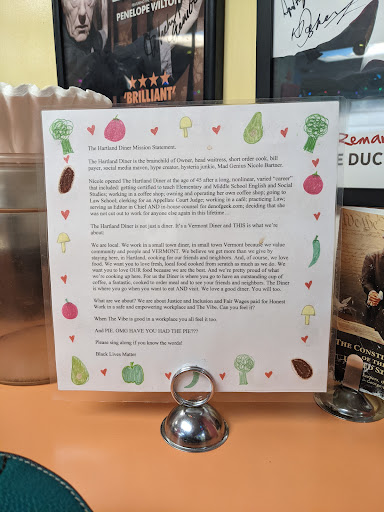 This diner has a huge personality! We stopped by on our way out of Vermont and I really enjoyed the atmosphere. Their motto is "World Diner Domination". The food was perfect. Food comes out as soon as its done cooking so it isnt always "in order" but its hot! For example, my boyfriends side came out before his main course. Anyhow, I wish we lived closer so I could try everything on the menu. Also, be aware of prices when youre ordering! A side of corn beef hash was $10! A surprise to me on the check but it was the best Ive ever had so I wasnt mad about it.
