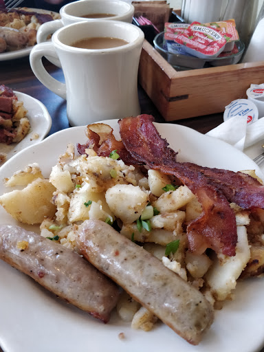 Dont be deceived by its name. It sounded homey and seemed like it had to have great breakfasts. Three out of four of us had a bacon,egg and cheddar cheese sandwich. The cheese was flavorless, almost tasting like and having the texture of a mozzarella. The hash browns were inedible. For starters, the potatoes had grains of dirt in them, clearly not properly washed. They were boiled, sliced, barely browned and very dry, by far the worst wed ever eaten. They offered to top off our coffee about a minute after serving them to us, and when we were ready to have more, it was impossible to get their attention. The place could also use a real good cleaning. We wouldnt go back. (Not inexpensive either, as breakfasts go.)