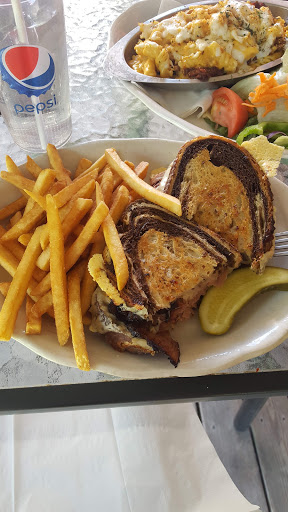 We ate on the deck under the tree. Chair and table needed cleaning when we got there. App plates were dirty. Waitresses stomped around shaking the table. Dumb, pandering country music. Caesar salad was chalky. I dont recommend the Harpoon Cider.