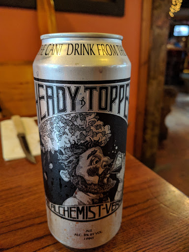 The review and picture is for the Alchemist a craft beer brewery just up the street from the Sunset Grille. The Alchemist on Cottage Club Rd is a newish (~2015 - 2016) addition to the company with the original brewery being located in Waterbury near Ben & Jerrys. The original location is no longer open to the public. The new location, in Stowe, is much better poised to serve the public with separate fast moving lines for taste testing and purchasing product. Its a nice bright cheery place and the featured product is "Heady Topper," a very hoppy beer.