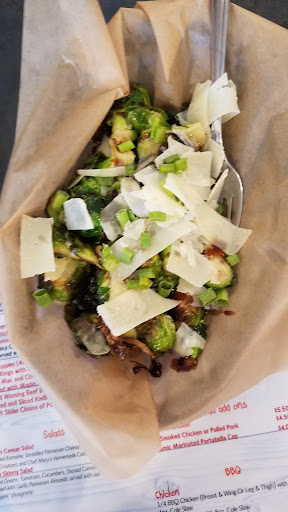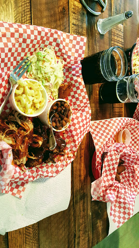 Counter service with family style table setting. There is a good selection of local beers on tap. The food though, was underwhelming, the flavor just isnt there. You can see their smoker through a window, but I dont know what they were using it for. We got keilbasa, fried pickles, and a piggy sampler with pulled pork and burnt ends. The keilbasa and fried pickles were bland. It seemed to me that they had been breaded long before they were fried, they just didnt taste like pickles anymore. Even the coleslaw lacked flavor. I dont have much to say about the pulled pork or the Mac and cheese. The burnt ends though. Aside from the outer layer of burnt meat, it tasted and like it was roasted in a Crock-Pot. The prices would have been fair for better food. I wont be going back.