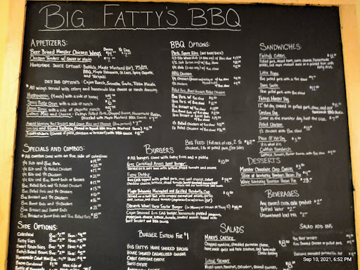 First experience eating at Big Fattys, had tried another time previously but they were closed. I was confused as to how to go about ordering when I first when inside. I also was not fully understanding what some of the items were on the menu. I had ordered pulled pork. I had assumed that it was sandwich, however it was not. It was a pile of pulled pork. It did not come already dressed; instead there was BBQ house sauce at the table to use. The sauce was not bad, it was different, not really my taste. The seating was a bit limited and you were really close to the next table. The salad bar was limited, but it was later in the day so maybe earlier there were better selections. Staff were friendly. All in all it was not bad, but not great.