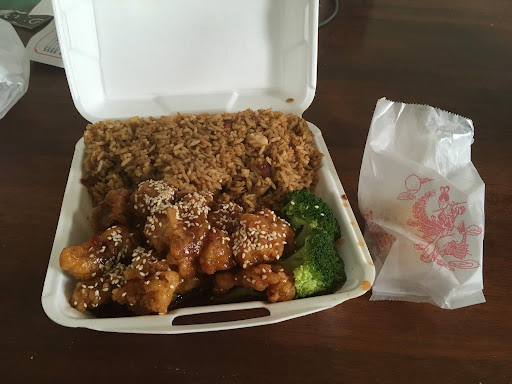 Take out Chinese. Some token seating. Order one of the combinations. Pork fried rice, egg roll, and General Tsos chicken was overflowing the container. Some serious portions here. You will get your moneys worth. Takes about 10 - 12 minutes from the time you order.
