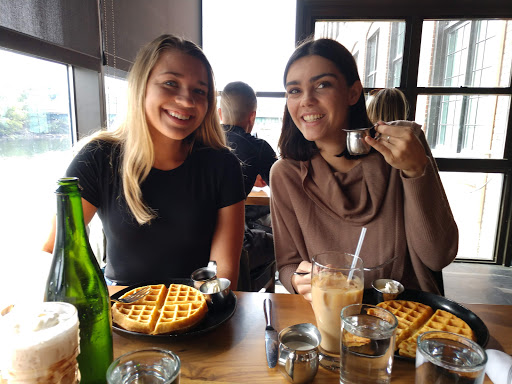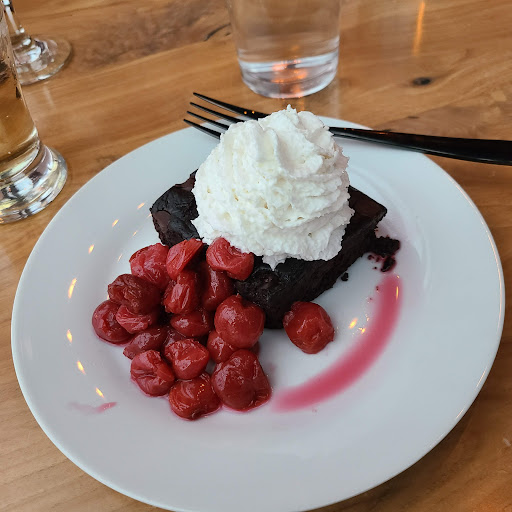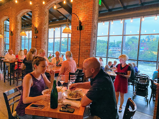 What a wonderful place for dinner in Winooski! My husband and I made reservations and we were seated at a small table near the large windows in the back. The restaurant is located right next to the river with great views even in the winter. It looks like they have outdoor seating as well during the warmer months. There is a large bar in the center with very high ceilings, brick walls, and vintage light bulbs. The décor was very nice. It was a great choice for a date night! Overall great atmosphere and great beer selection. We ordered the squash pasta, garlic fries, flatbread, tiramisu, and German chocolate cake. Every was so good, but the German chocolate cake was AMAZING! We happened to go on a trivia night so it was kind of noisy, but not so much that it ruined the mood. It actually looked like a lot of fun. I would not hesitate to go back to this place, we had a wonderful experience!
