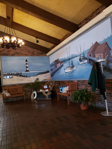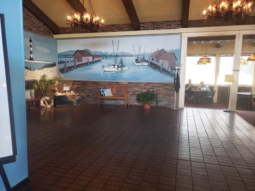 Veey open atmosphere ad far as seating, which is nice. Was just two of us, but there were family groups of all ages and sizes and everyone had ample room to get in and out. The food was DELICIOUS and large portions made for leftovers foe lunch for me but husband finish his. The menu offers quite a variety of seafood. Great place and convenient just to the right across from Cracker Barrel before you get to Lowes. Also close to hotels and was half the Price of Red Lobster!