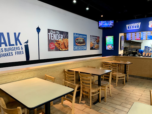 Good place to sit and talk. Very good tasting chocolate/peanut butter shake. Good value for plus $5 burger places. Cleaner than mcDs. They do have old bay seasoning as a all you can get condiment and regular vinegar. But not malt vinegar for their french fries. View is ok. They have a couple of tvs. Outside seating is uncovered. Nice p/b & j burger too. Not crowded at all.
