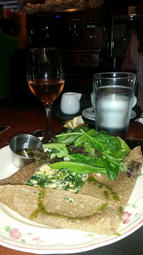 SKIP IT. Underwhelming. Long wait for drinks and food (ALMOST 1 HOUR AFTER SEATED!) Muddled, flat, forgettable crepes. We were a party of 4. A table of 4 was available, yet the hostess had to think really, really hard before seating us there. Huh? (this place doesnt take reservations) Waitress took a long time before she took our drink orders. Then even LOOOONGER time to take our food orders. And finally, ALMOST 1 HOUR after we sat down, we got our food. Two (savory, not sweet) crepe dishes were poorly put together. On both, the vinaigrette lathered the spinach brought down the whole dish, utterly flattening it out. In the Farmers Market, only the feta gave some accent. On the Parisienne, the chicken was dry and the whole dish was a victim of underwhelming execution, not too mention overly salty ratatouille. The trout was average. Crispy, but oh how salty it was. The one dish out four that was ok was the french toast, but it way overpriced. Well, its hard to mess up a french toast. Did I say it was overpriced 2 slices of bread with egg? The one thing that was good was the french fries. Lol, we anticipated v. e. r. y... s. l. o. w service that we added an order of fries, and it came out first, rescuing our hungry stomachs. AVOID.