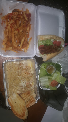 A local owned deli. I had the Alexandria Cheesesteak. With Beaf stake, chicken stake, provolone cheese, lettuce, tomato, mushroom,onion and mayo. Was real good. WiFi as well.
