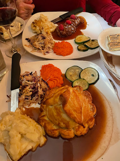 Just love this place! The Beef Wellington is a favorite and the crab stuffed mushroom caps are a meal in themselves. Terrific food, cozy atmosphere... a trip to a french village for dinner. Very cool!