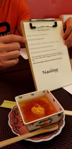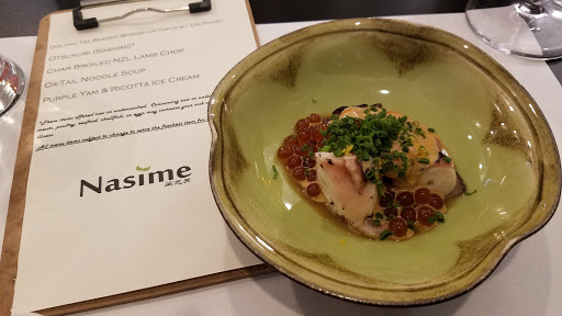 Ive only had one meal in this new modern Japanese restaurant due to difficulty getting there from Potomac. But I would say out of all the Japanese (owned) places that Ive been to in and around DC, that the food takes first or second place in my book. Definitely beat Seki, Blue Ocean, Yuzu and a whole bunch of other places. At least on par, or better than Sushi Taro and Kaz. Not as stressful and tight as Makoto, and with better food. Just had a meal at Kajitsu - a NYC Michellin 1 star and would have to say my Nasimes meal was better. The chefs preparation is not only excellent and delicate, the type of seafood he uses surprises someone like me who pride myself in getting stuff like live King Crabs and fresh scallops in the shell. The place is small, and intimate with excellent service. But If you are seriously into your Japanese food, I believe this is the best choice around DC area right now for advanced foodies. Enjoy it while the price is fair/low and reservations relatively open.