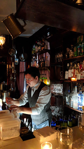 This place is so cozy and the drinks are amazing. It is a bit pricey, but well worth it. The atmosphere is nearly perfection, from the candle lit stairway to the relaxing back room. I love how quiet it is, loud bars are so not my scene. If youre looking for a intimate, speakeasy style place with high quality booze, this is it. If you want to party and have cheap drinks, I suggest looking elsewhere.