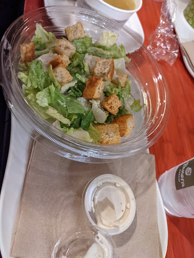 Ordered Greek salad at 3:30 for dinner. Puny! Toppings were ok, but there was so little green in huge white bowl it was pathetic! Also, requested wheat bread, served white had to send back. No butter, server said he had to get it out of the back. In a bread shop??? Really? Ive been here in the past (over year ago) and the salads were more generous. I dont eat meat, so this was like a side salad. Too bad because youre near my home and I planned to schedule a working lunch meet. No way now