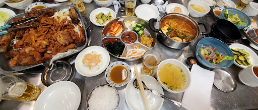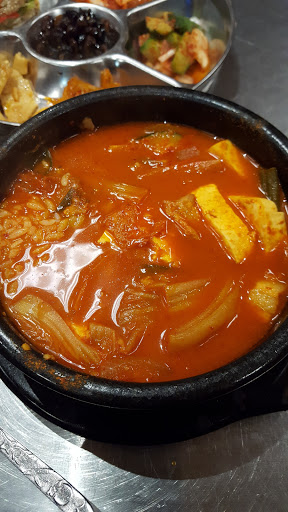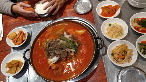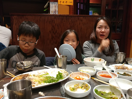 The marinated duck bulgogi was ok, even when properly seared it wasnt too flavorful. The grilled mackerel was fantastic. Noodle Soup with clams was pretty subtle almost falling in the blend side. The Rice pot with vegetables and beef was pretty decent. Ill have to give it a try again. The place looks clean, the restrooms too, the attention was pretty friendly and quick. Id go again to try that fish.